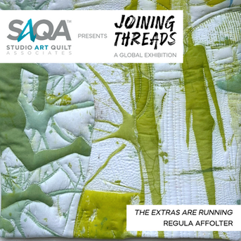 Screen printing interpretations are superficially accentuated by free embroidery with the sewing machine.